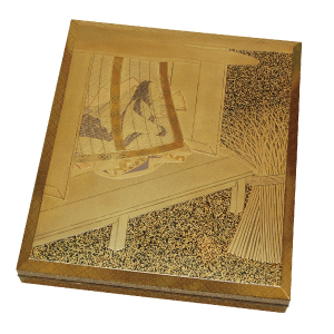 神坂雪佳が図案し、実弟で蒔絵師 である神坂祐吉が手掛けた作品。 御簾の繊細な表現が美しく、大変 貴重な作品となっております。